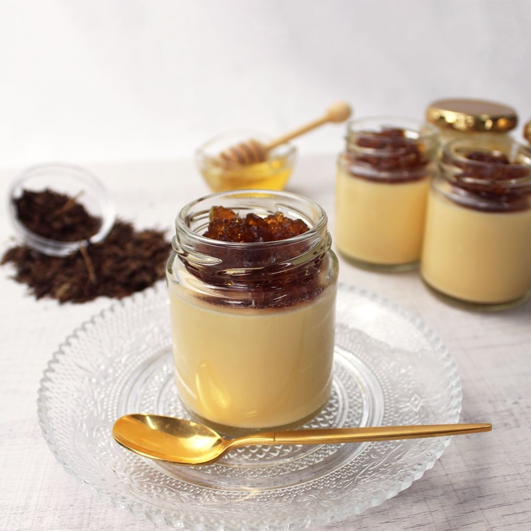 ✓ほうじ茶と生はちみつのジュレにより、