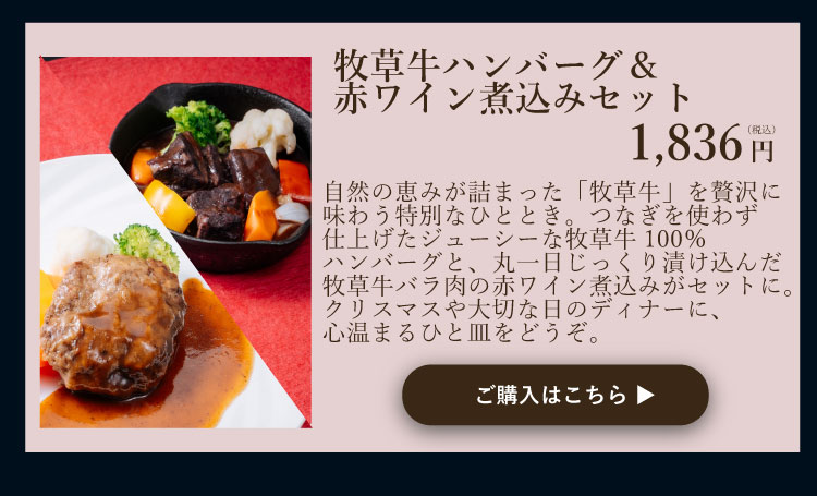 【クリスマス限定】牧草牛ハンバーグ&赤ワイン煮込みセット